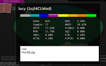 مساعد PokerNow هو أداة عرض متقدمة (HUD) مصممة خصيصًا لمنصة PokerNow. هذه الإضافة المجانية لمتصفح Chrome تعزز تجربة لعب البوكر من خلال السماح للمستخدمين بتحديد الألوان وترك ملاحظات على اللاعبين، مما يساعد في التقييم الاستراتيجي للخصوم. إنها توفر ثروة من إحصائيات اللاعبين، بما في ذلك VPIP و PFR و 3BET والمزيد، التي يتم جمعها من مستخدمي الإضافة الآخرين، مما يضمن أن يكون لدى اللاعبين وصول إلى قاعدة بيانات قوية من المعلومات لإبلاغ قراراتهم في اللعب.